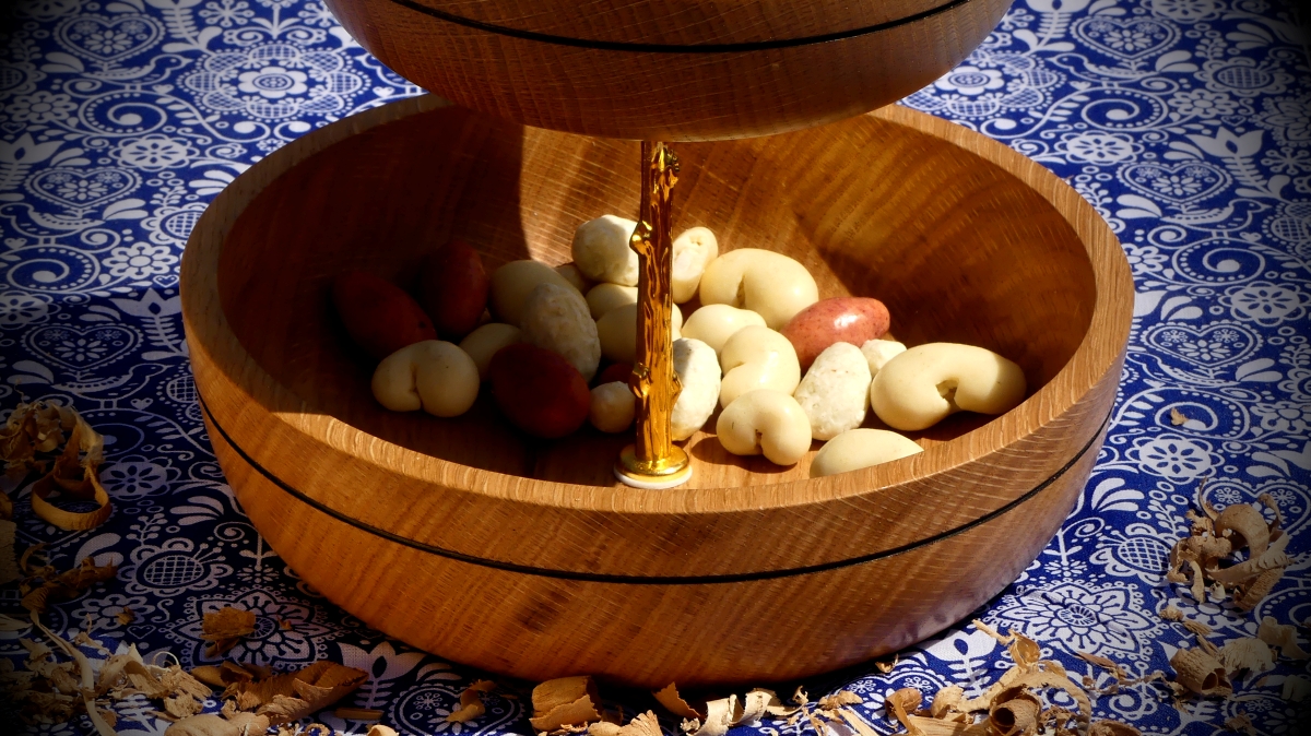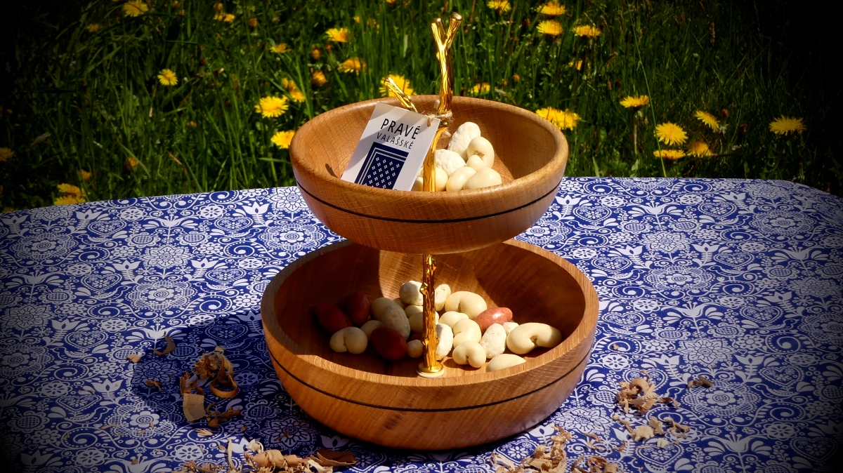 Máte rádi posezení ve dvou? Pak je tento etažér jak stvořený pro Vás. Jeho objem na suché křupkání postačuje a svojí menší velikostí lépe podtrhne kupř. intimitu večeře při svíčkách.
