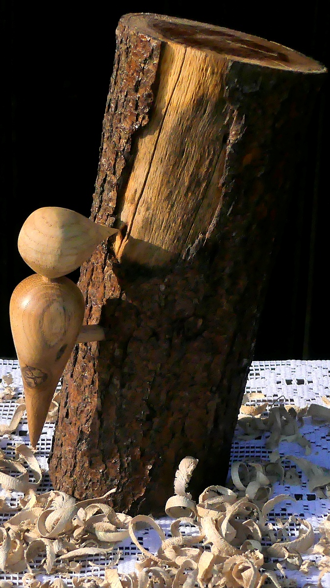 Roztomilá a pevná dekorace, která vás ihned přenese do atmosféry lesa či zahrady. Ošetřeno tvrdovoskem.Rozměry 11 x 31,5 cm, š 16cm včetně datlíka.