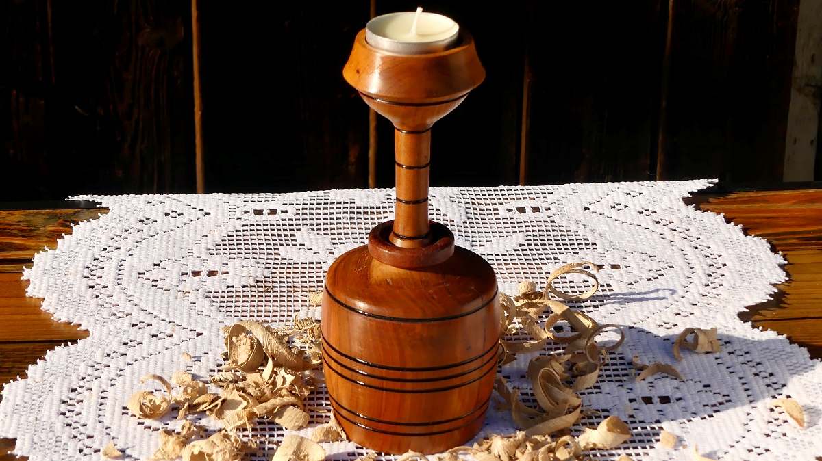 Vzhledově neotřelý svícen s poněkud těžší základnou, která zajišťuje stabilitu.Rozměry: 18,5 x 7,5 cm, ošetřeno tvrdovoskem.